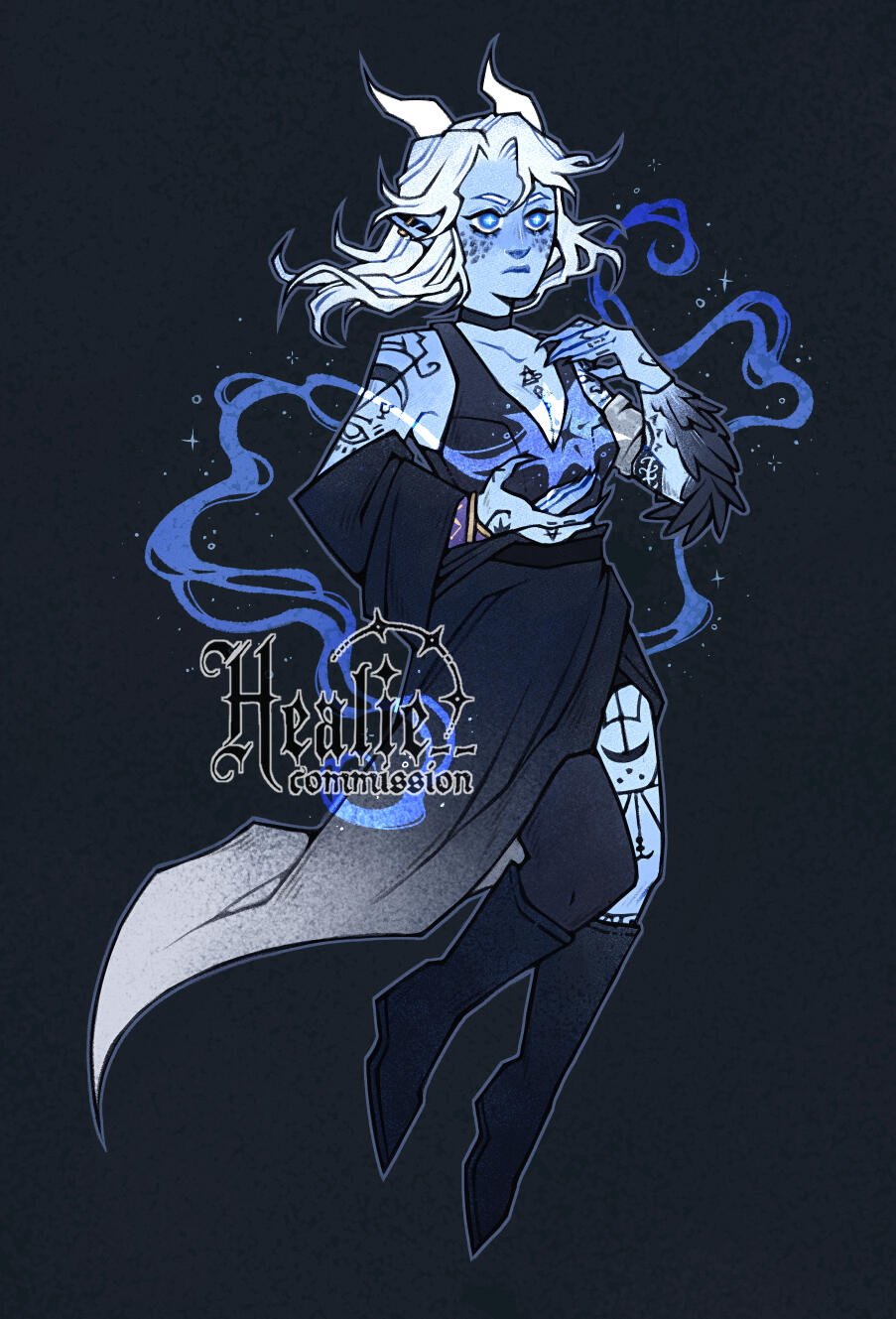 A more detailed half-body illustration of your character with ornamental and decorative elements. For more complex designs including wing/intricate armour/creatures there may be an additional price depending on the scale.*As these are more time consuming pieces, I'll only take 1-2 a month of this style in particular.
